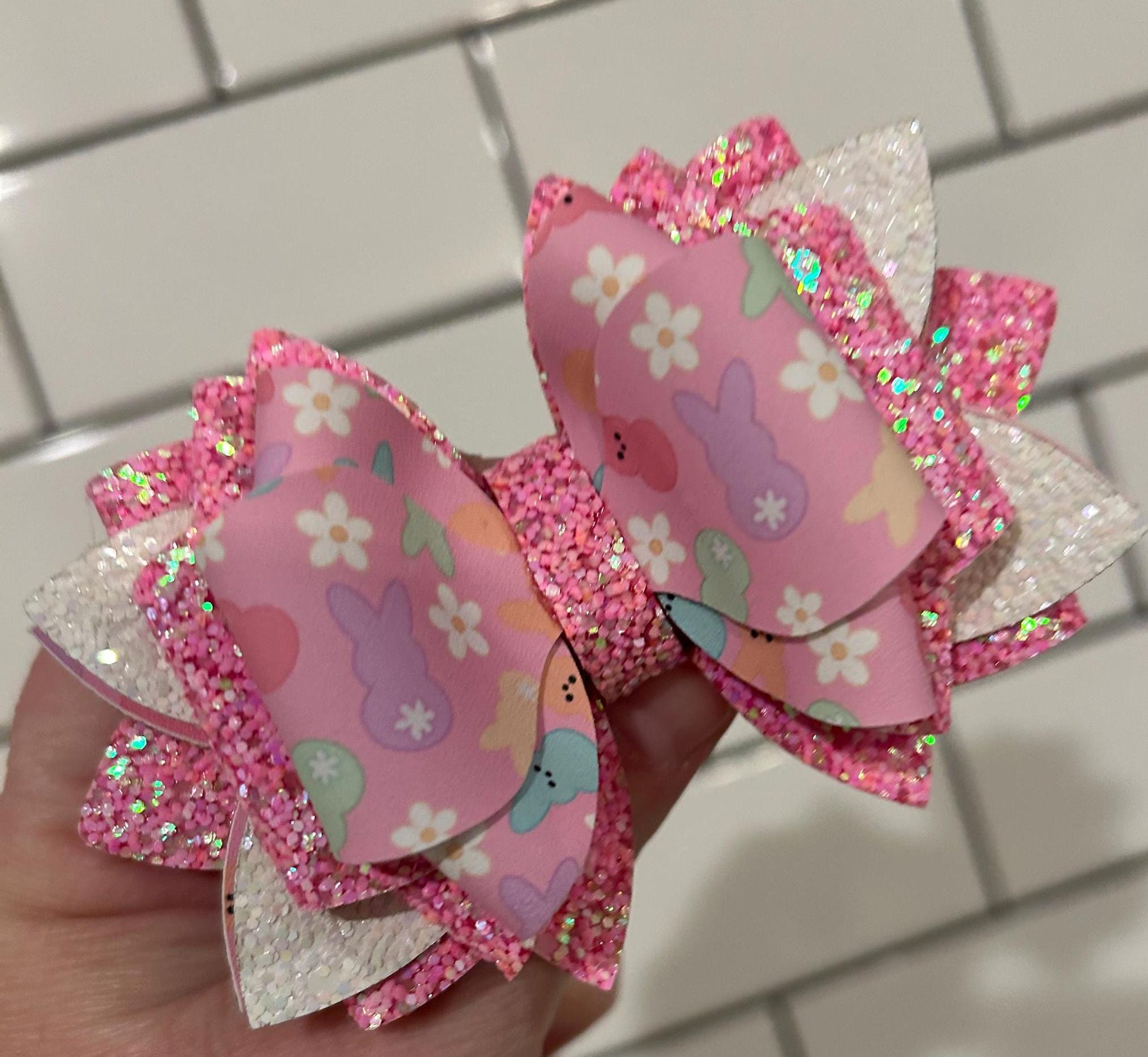 Can customize colors Glitter Tumbler Bow for Stanley, straw topper, Easter peeps bunny pastel lavender white sizzling pink mint glitters