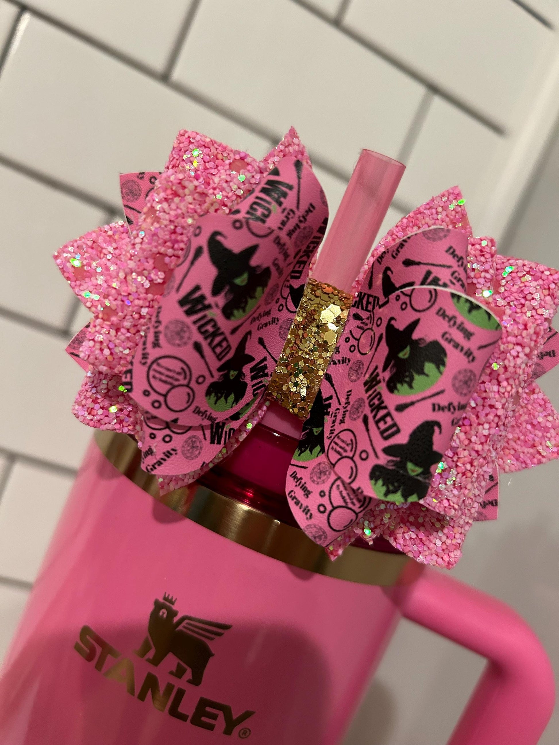 Custom Stanley Tumbler Bow Glitter Straw Topper Wicked pink Glinda elphaba white Gold green black wizard of oz pink Glenda