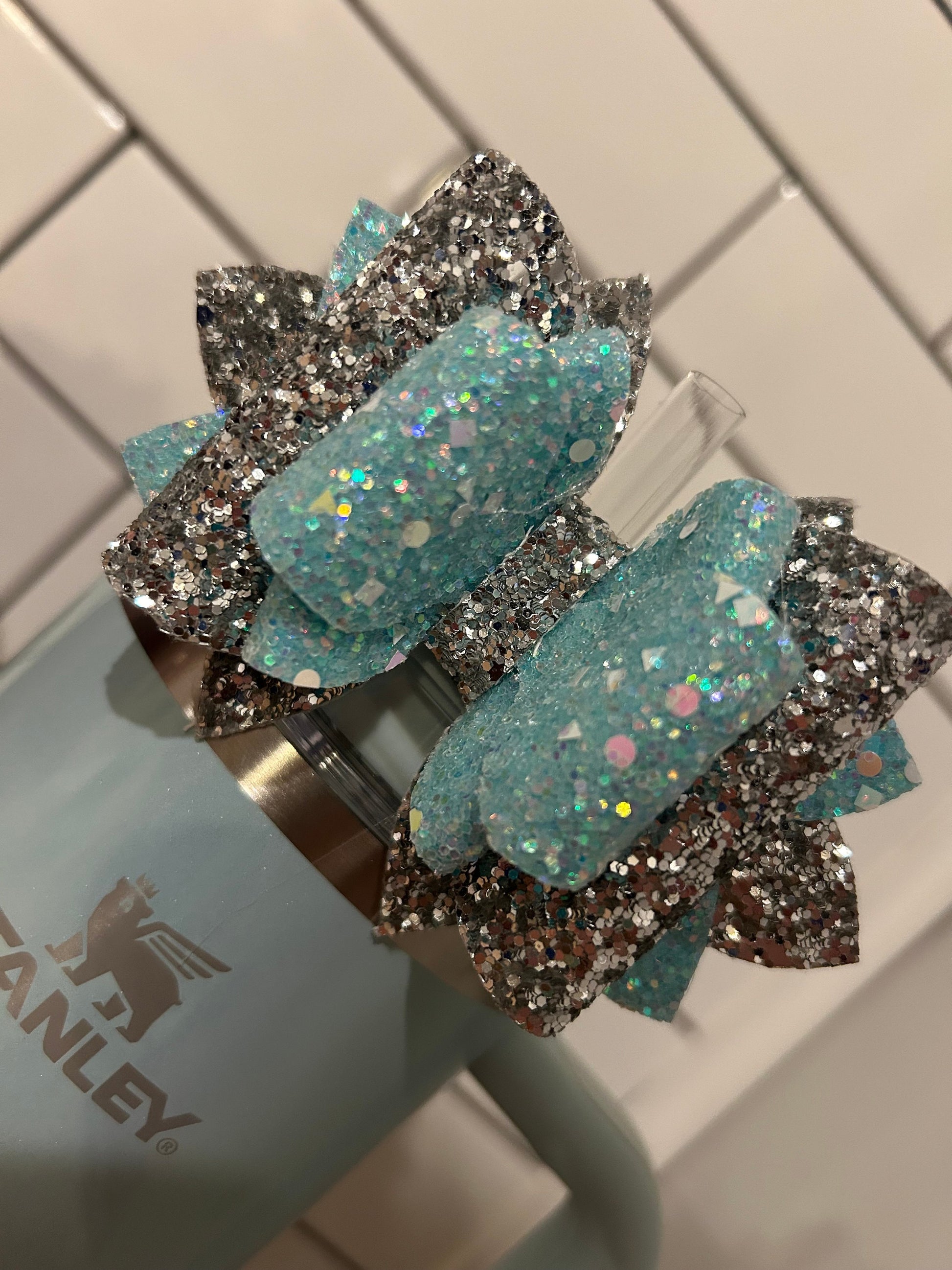 Glitter Tumbler Bow for Stanley, straw topper, blueberry milk glitter silver blue green aqua turquoise