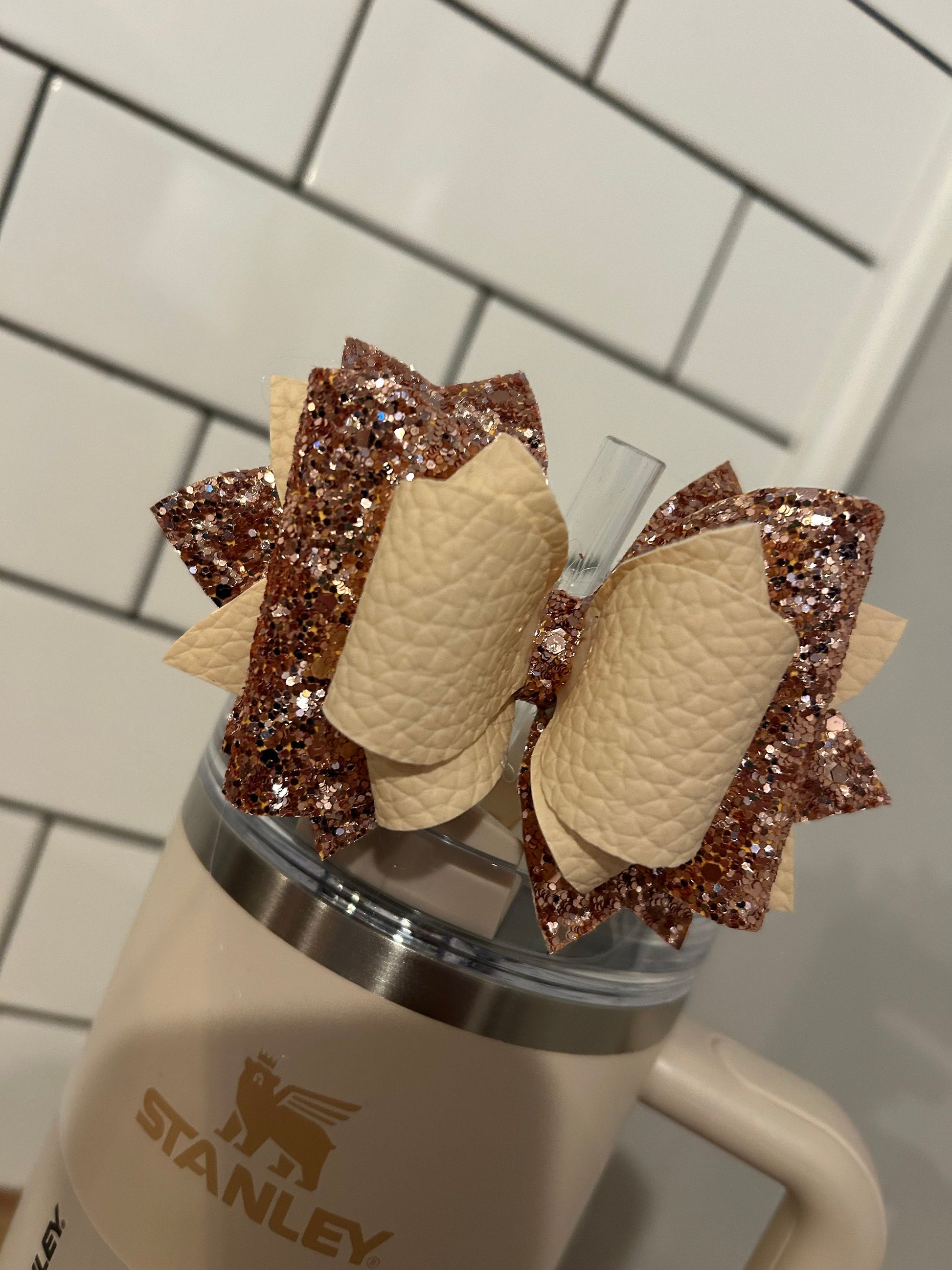 Glitter Tumbler Bow for Stanley, straw topper, cream rose gold best beige glitter oat milk calia copper white