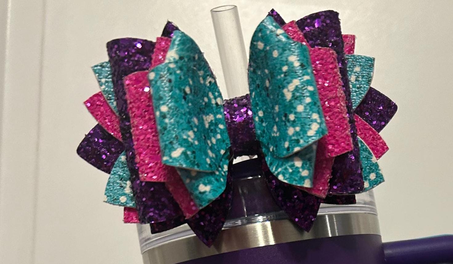 Glitter Tumbler Bow for Stanley, straw topper teal purple hot pink camelia deep purple paradise pink punch