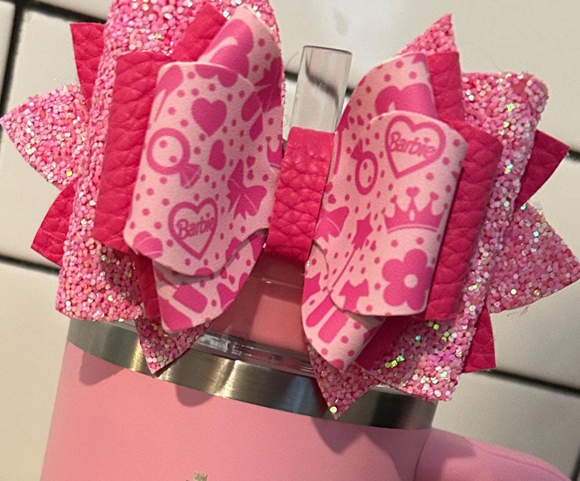 Pink fuchsia icon Tumbler Bow for Stanley, straw topper pink light hot pink fuchsia girl doll inspired makeup fashion hearts lip kiss