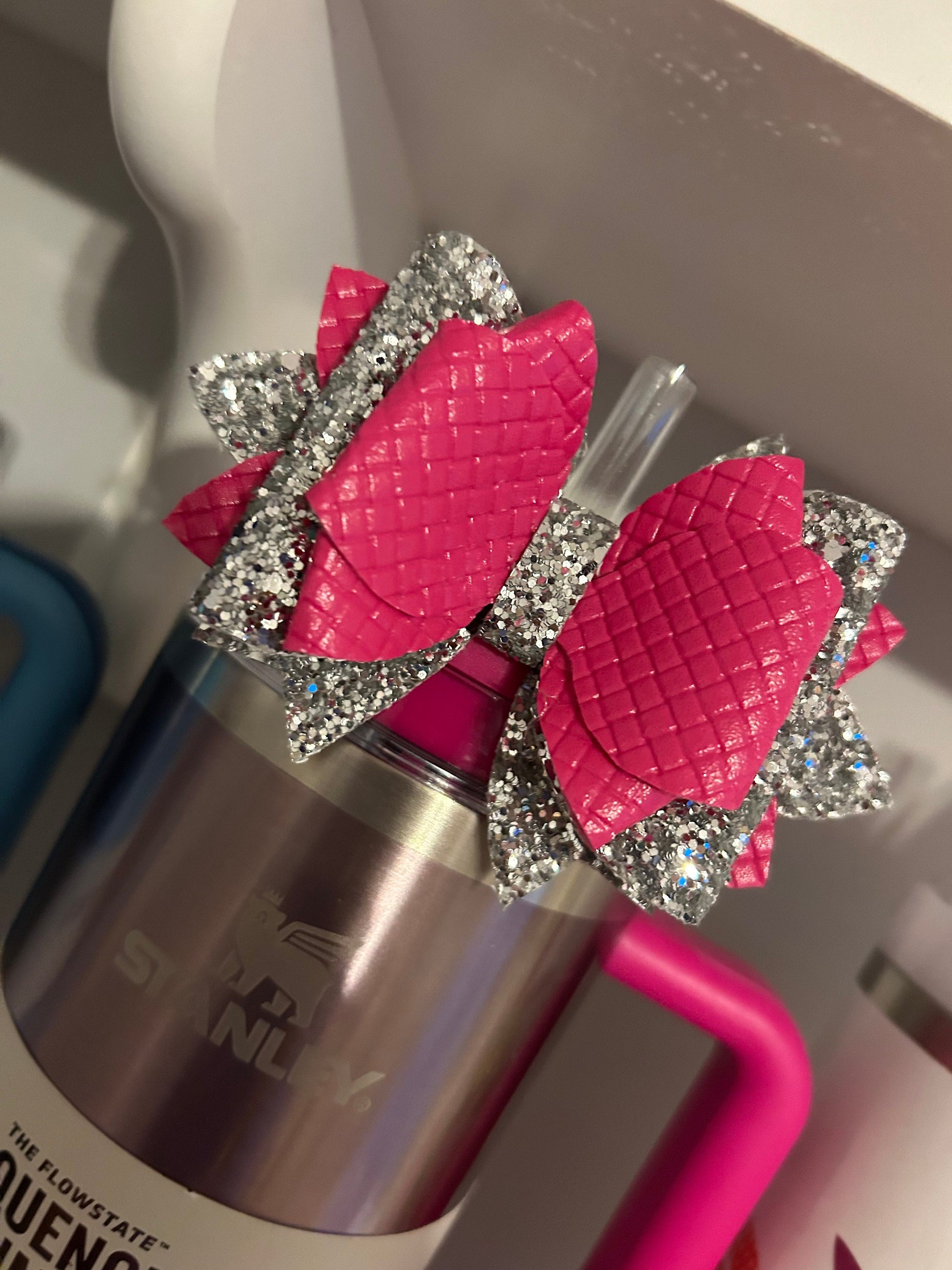 Stanley Tumbler Bow pink peony camelia gradient fuchsia flamingo Glitter Straw Topper valentine hot pink cranberry punch shimmer