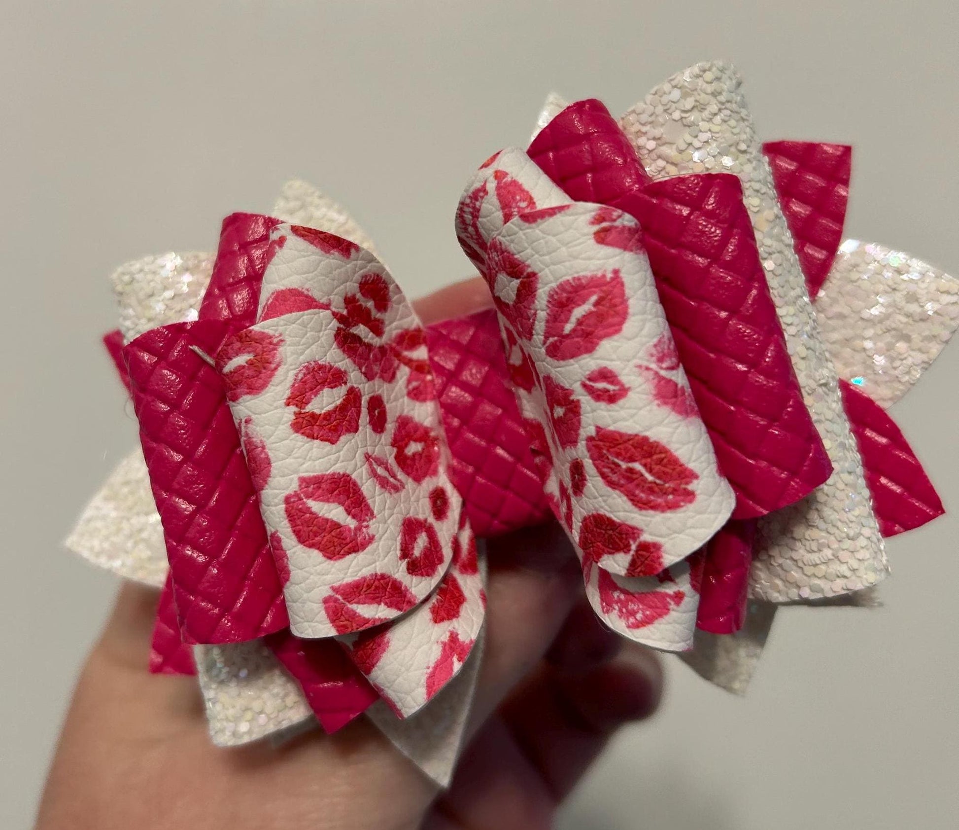 Stanley Tumbler Bow pink red Glitter Straw Topper valentine hearts pebble lips kisses hugs white