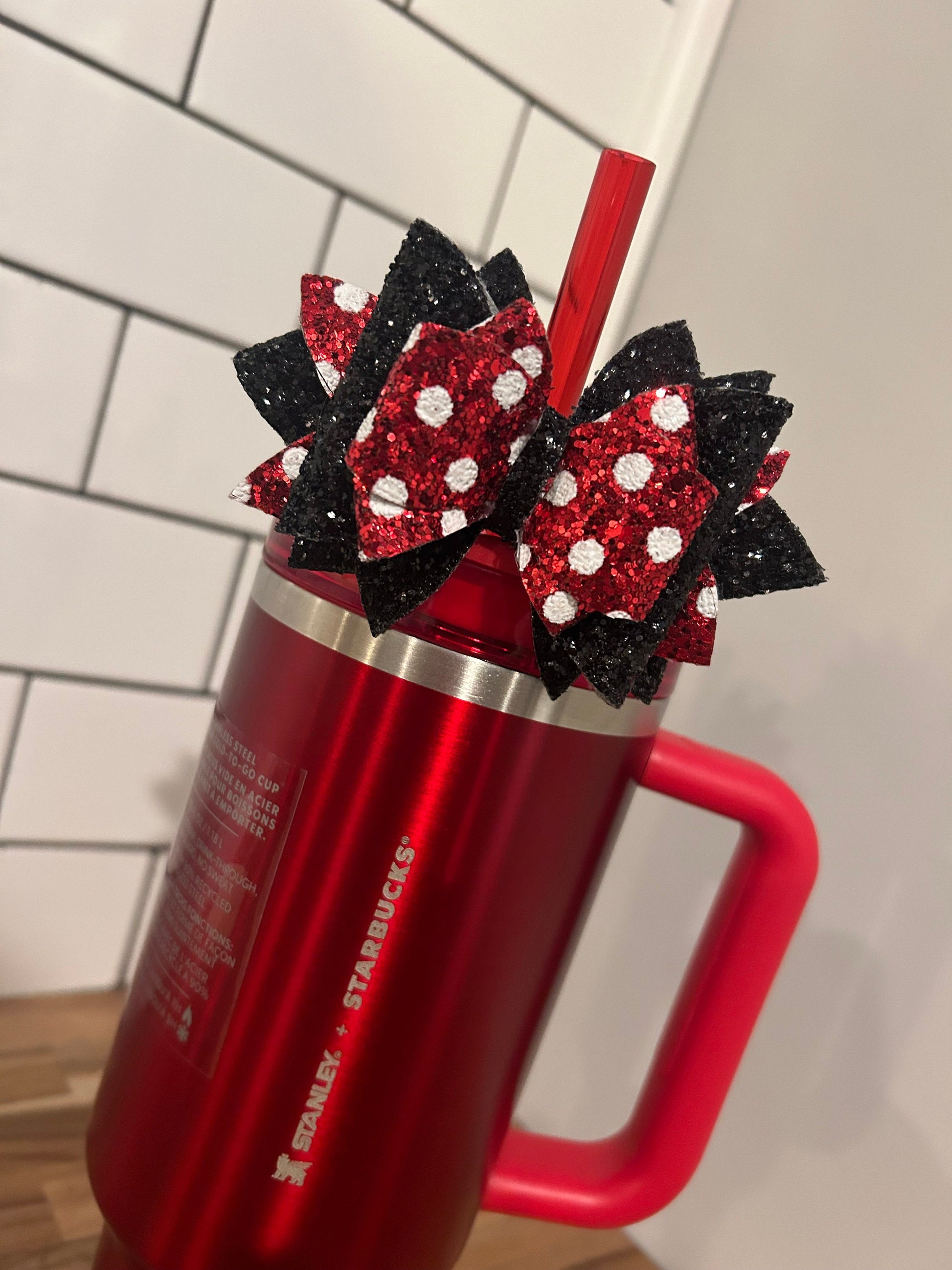 Tumbler Bow for Stanley Mouse Red Black Minnie White Polka Dot