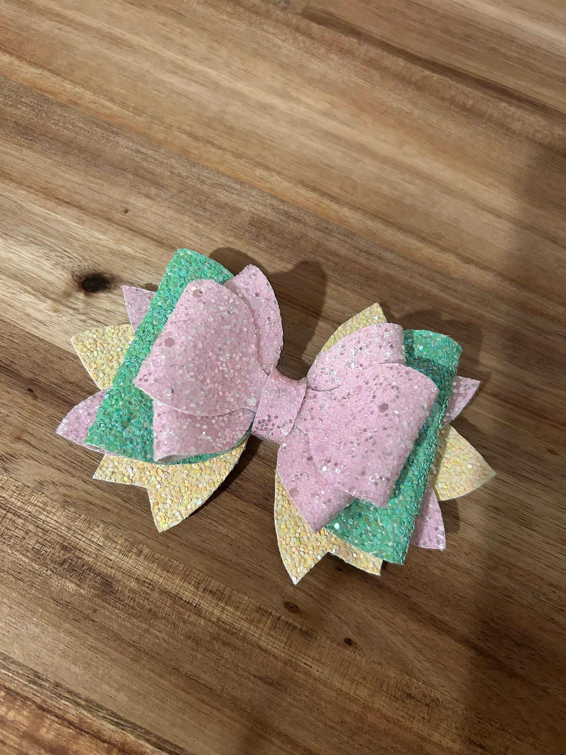 Warm Serene Brushstrokes Stanley Tumbler Bow Straw Topper Pink Mint Yellow glitter